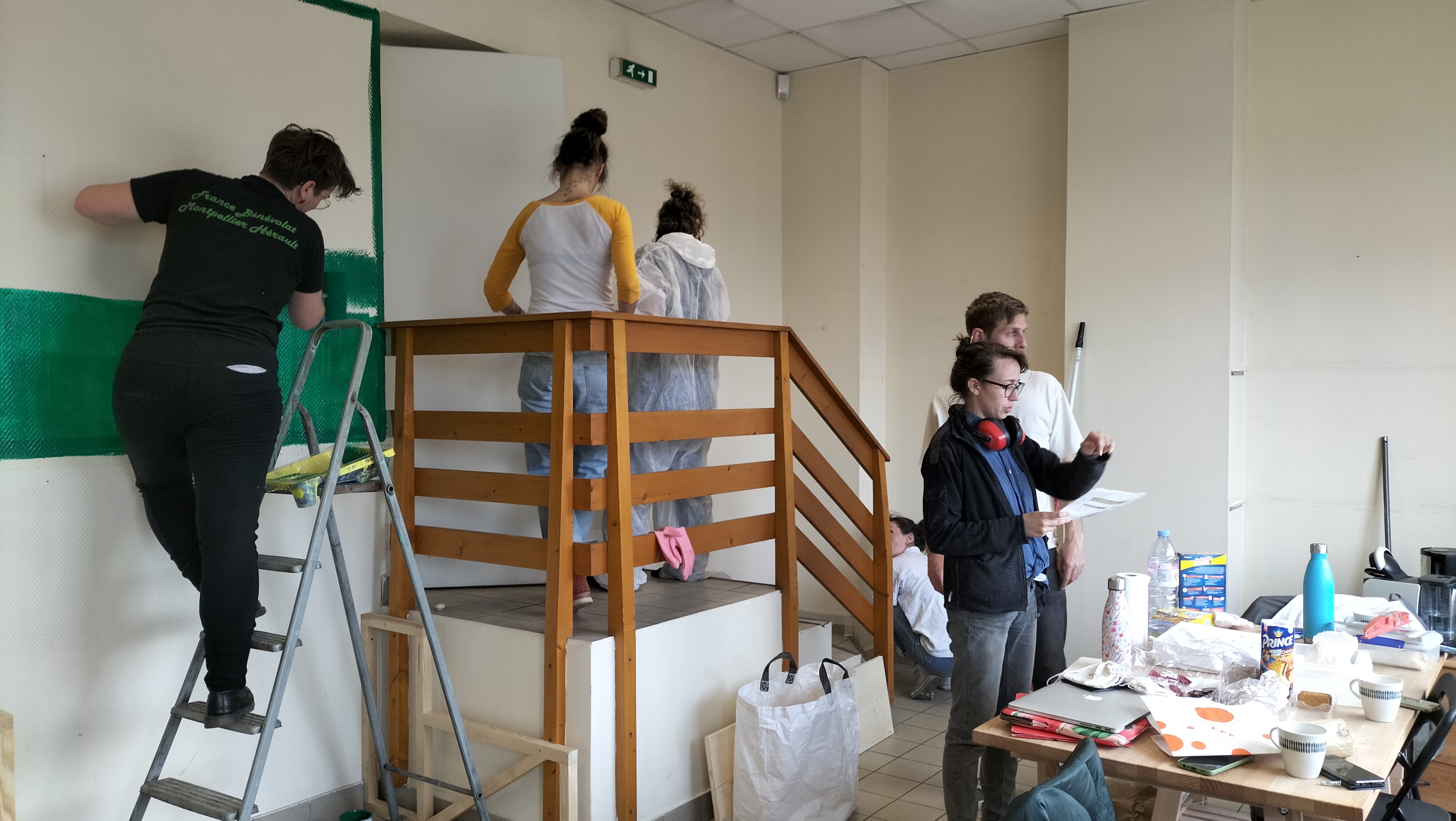 Du 28 au 30 mars dernier, un chantier participatif a permis aux habitants de réaliser l’aménagement intérieur de leur maison du projet. ©Sollar_Recipro-Cité