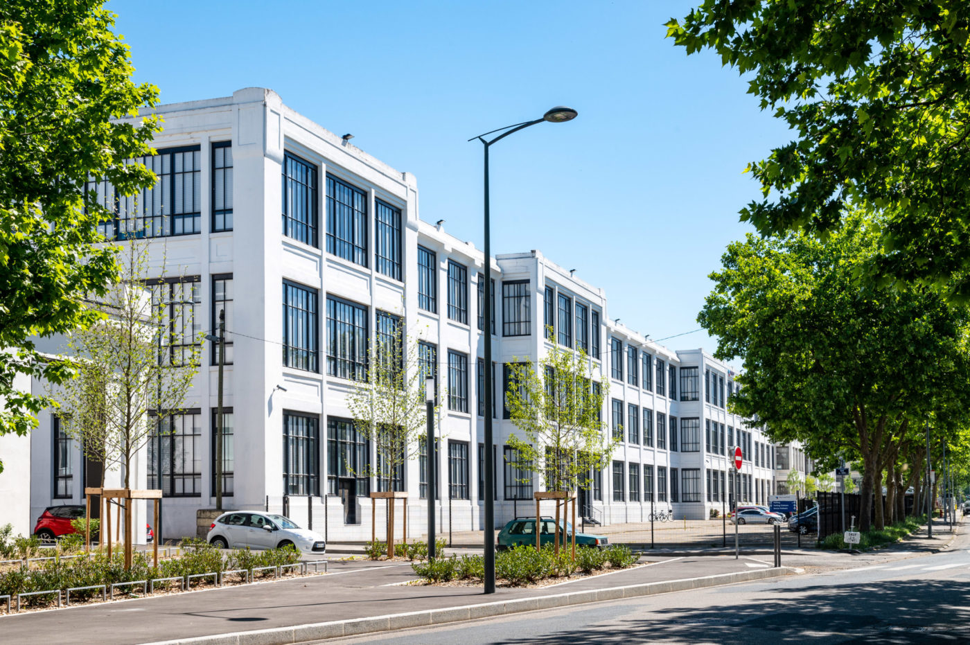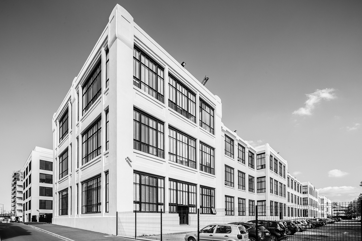 La façade l'usine TASE, figure emblématique du patrimoine industriel du Carré de Soie, a été réhabilitée en bureaux en 2013. © Laurence Danière - Métropole de Lyon