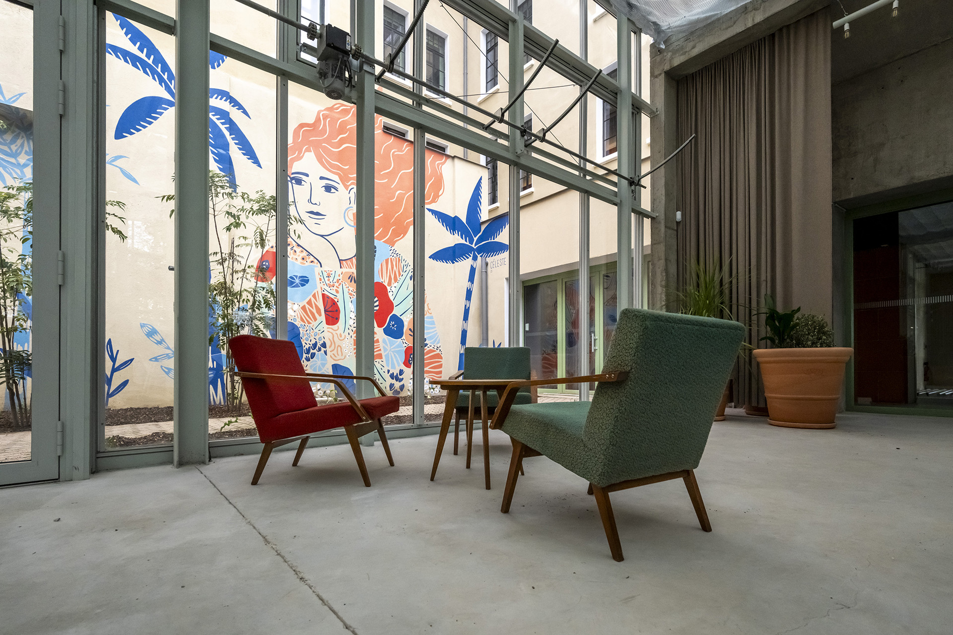 On y trouve également un bar, un plateau et studio de création ainsi que des bureaux et salles de réunion. Un laboratoire de créativité porté par le CCO pour soutenir les collectifs locaux et émergeants dans l’organisation de leurs événements.